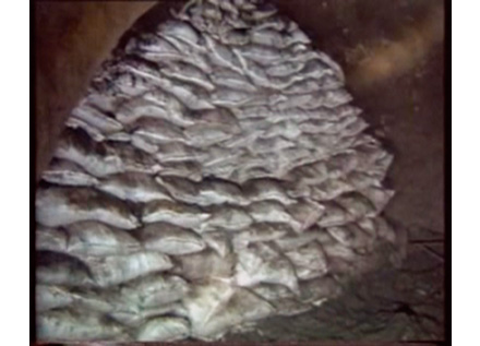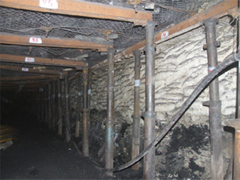 按推薦比例配成的混合料在800-1000℃高溫下,15-20分鐘內(nèi)不會被引燃形成明火,且不會產(chǎn)生有毒有害氣體,并有極強的隔熱功效。按比例將干碎煤矸與FSA料干混均勻后,用噴霧加水或噴水的方式使其形成均勻有粘彈性的混合料再裝袋壘砌成墻,此粘彈性的混合料一直呈濕潤保水狀態(tài),阻燃隔熱能力強。每個袋中20kg碎煤(或矸石與碎煤混合)+2-3kgFSA料+10-15kg水;封堵溜煤眼、小井時不裝袋效果更好。